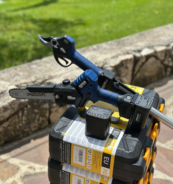 Con questo potatore puoi utilizzare sia la stessa asta delle nostre forbici, sia le stesse batterie dei modelli da 40MM.